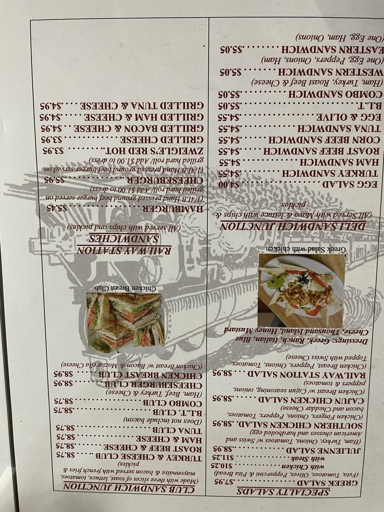 For something heartier, try the specialty salads; the Greek Salad with Steak is a refreshing mix of feta, tomatoes, and olives, while the Railway Station Salad combines tender chicken breast with Swiss cheese, peppers, and onions. Salad enthusiasts will appreciate the value of the Large House Salad at $4.25, perfect as a light meal or a side.